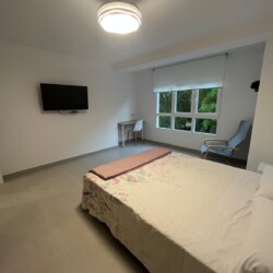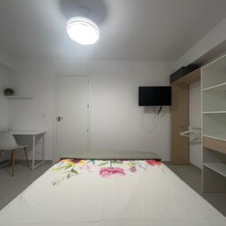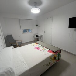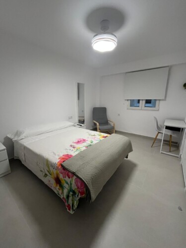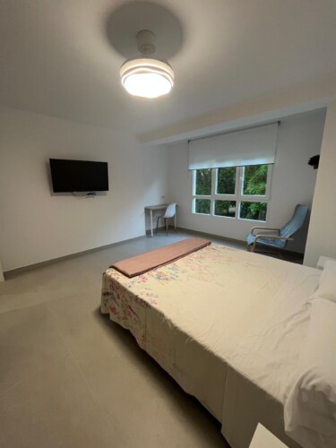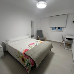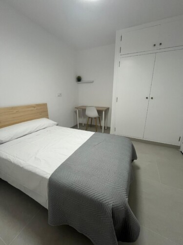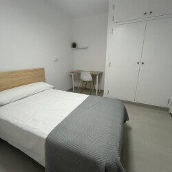 Cada habitación dispone de cama individual, escritorio, sillón, armario y televisión, pensada para garantizar tu confort y privacidad. Además, podrás disfrutar de amplias zonas comunes, como una cocina comedor totalmente equipada, un salón espacioso perfecto para relajarte o convivir, y dos baños (uno con ducha y otro tipo aseo) que aportan comodidad y funcionalidad al día a día.